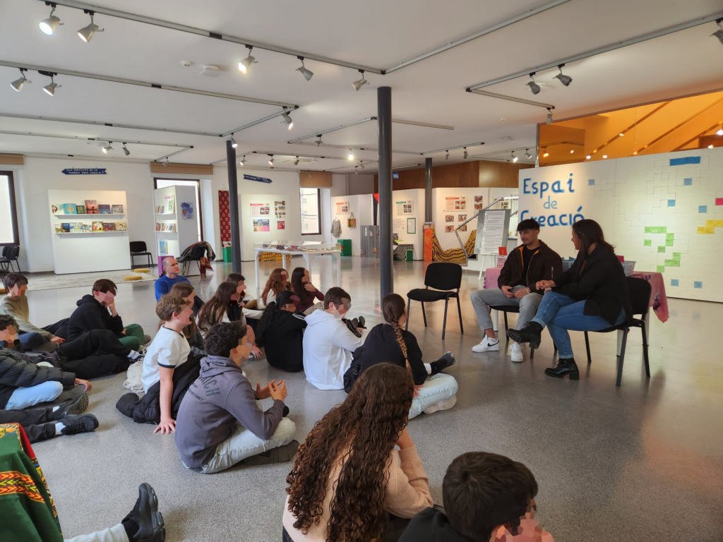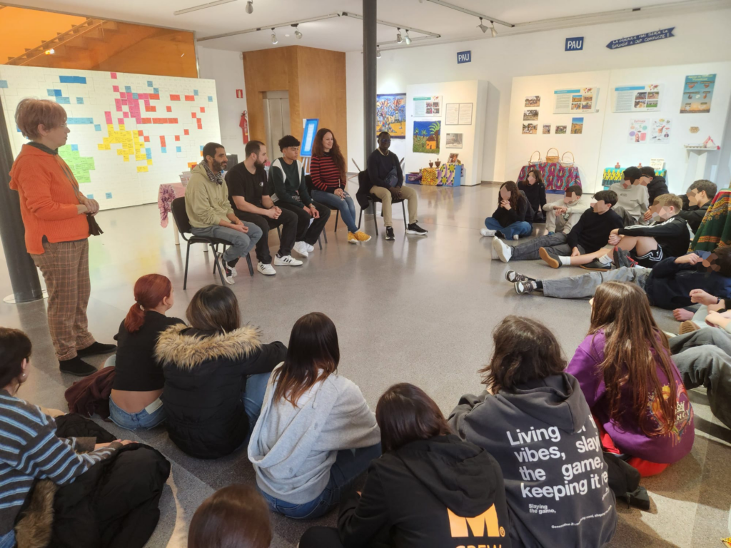 La actividad se ha desarrollado con alumnado de 2.º de ESO de l’Escola Bisme Sivilla y l’Escola Pia de Calella, en un espacio de encuentro y aprendizaje compartido alrededor de la migración, la inclusión y la convivencia comunitaria.